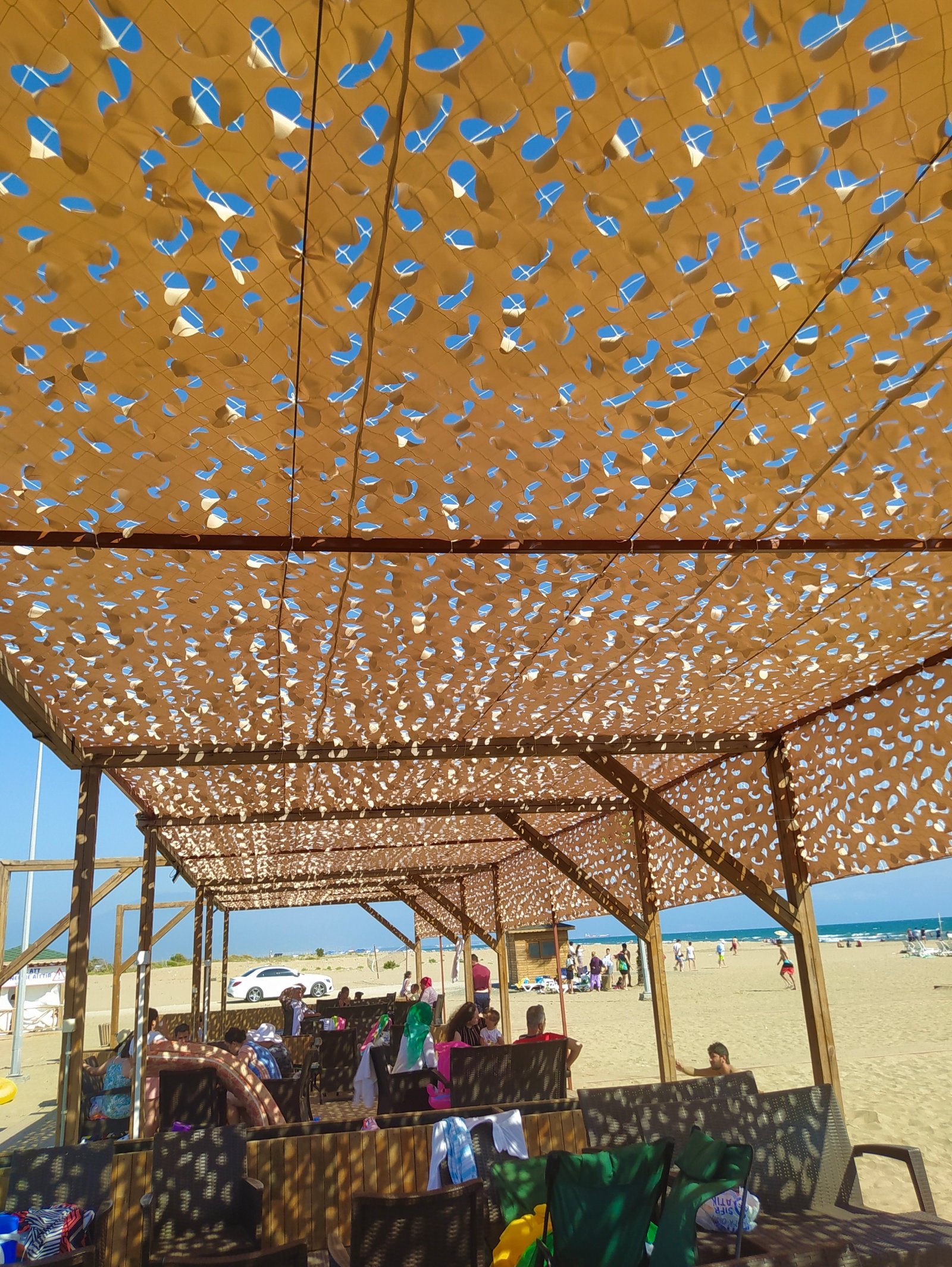 Burnaz Beach’in yaz sıcağında da keyifle vakit geçirilebilecek bir alana dönüşmesi için özel üretim spider gölgelik sistemleri kurulumunu gerçekleştirdik. Yaprak desenli ve UV dayanımlı kumaş ile tasarlanan bu sistem, doğal görünüme uyum sağlarken aynı zamanda etkili bir gölgelendirme sunarak misafir konforunu üst düzeye taşıdı.