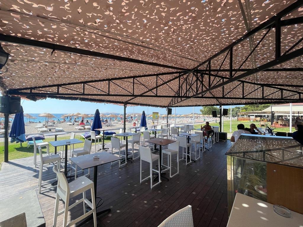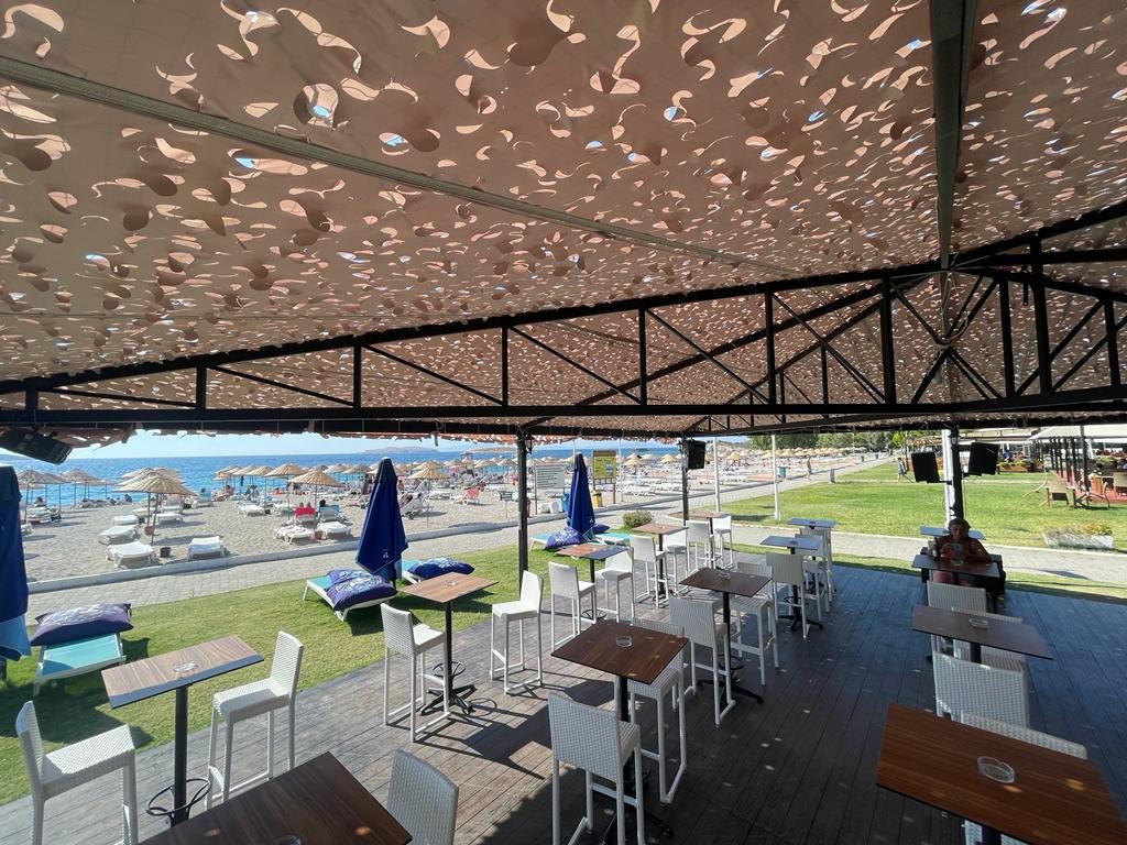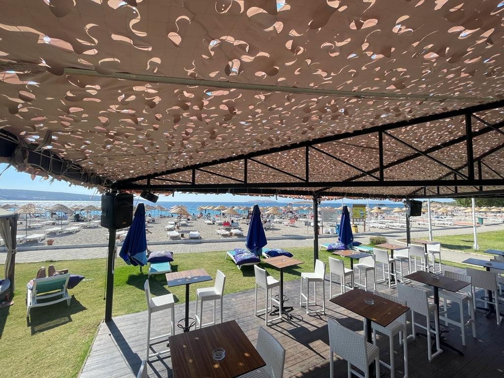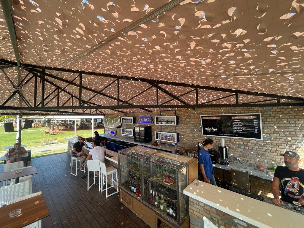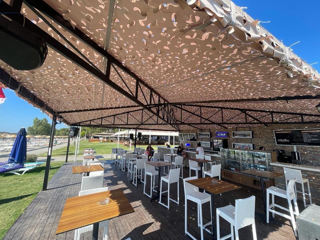 Hanedan Beach Otel’in deniz kenarındaki oturma ve dinlenme alanlarında misafir konforunu artırmak amacıyla özel tasarım spider gölgelik sistemleri uyguladık. Yaprak desenli ve UV dayanımlı kumaş ile estetik görünüm sağlanırken, yaz sıcağında etkili gölgelendirme çözümüyle misafir memnuniyeti artırıldı.